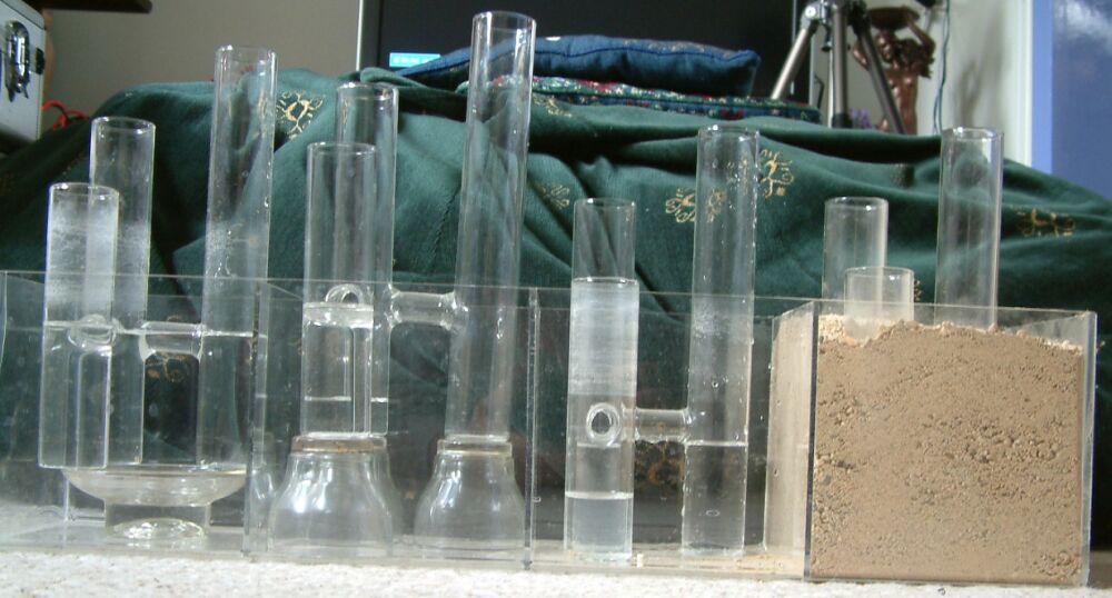 If we put a ruler against the side view we can measure from the bottom of each tube to the water level in that tube.