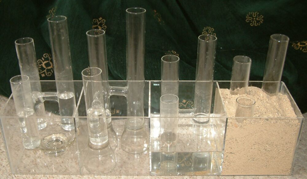In this picture you will see that we have added water to the section of the large plastic container next to the sand.