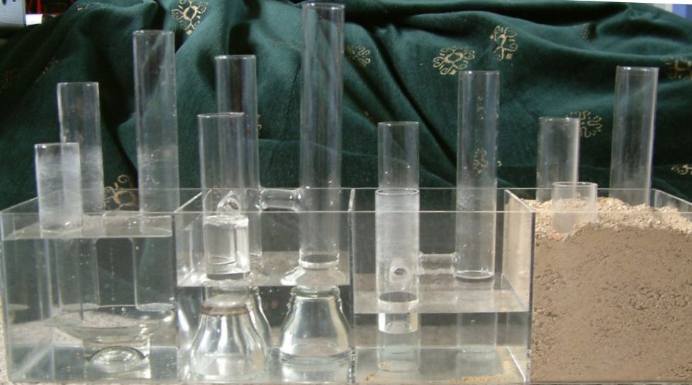 In this picture you will see that we have added water to each section of the large plastic container next to the sand.