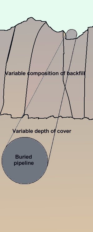 In these pictures it can be seen that the vase has been placed on a surface that has an undefinable profile as in the drawing the pipeline is at a variable depth of cover.