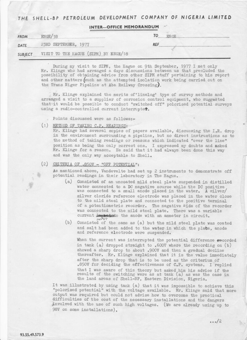 This was acknowledged by the British Standards Institute in 1985 and shown to be so by scientists form Nederlands and Germany. However, the UK and US organisations and scientists did not acknowledge that this invalidated all cathodic protection design and applied theory.