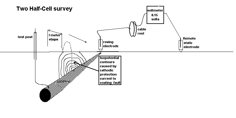 I described the 'two half-cell' procedure that I used extensively in Nigeria and it was adopted as and additional check to locate the exact position of coating faults before excavation.