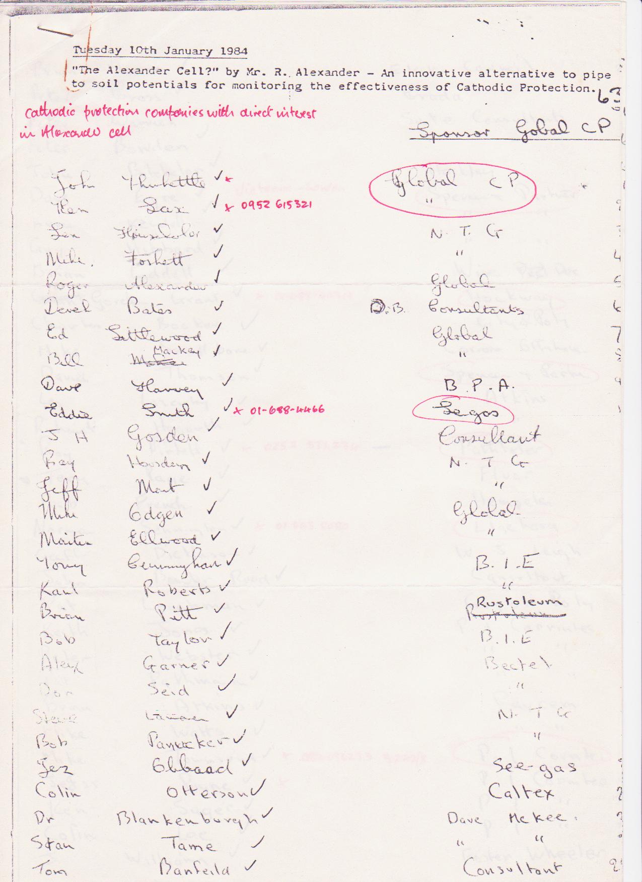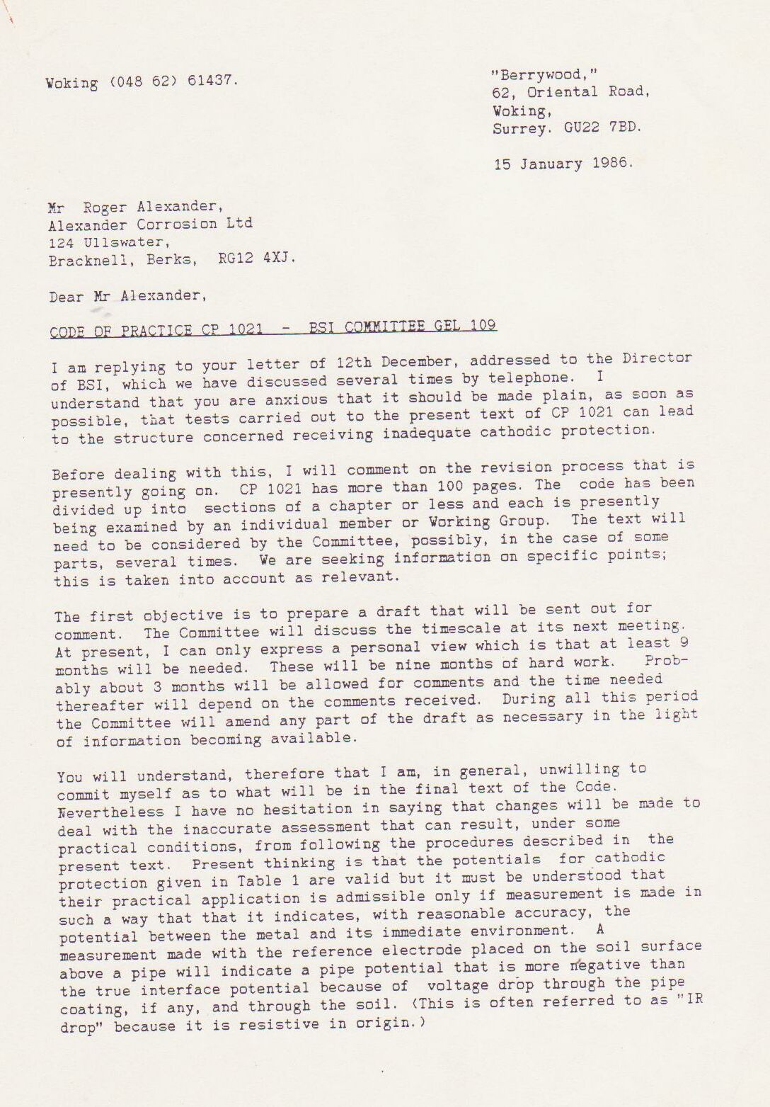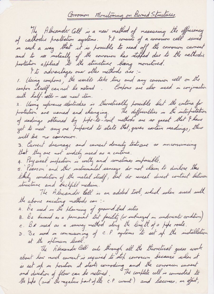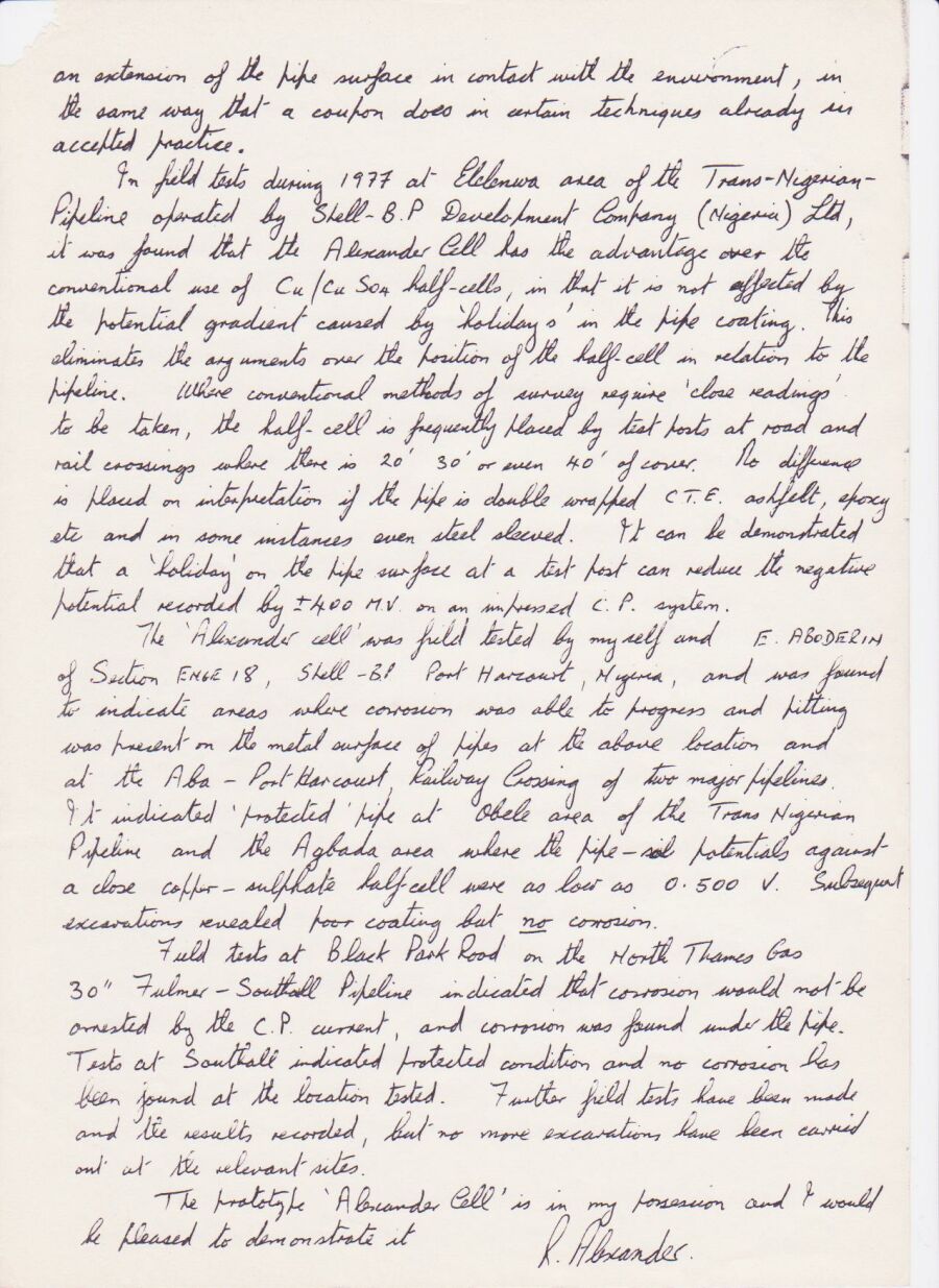 My success was such that Bob Greenwood visited site and saw the my procedures in action. He later authorised the purchase of an Alexander Cell, which prompted the Corrosion Engineer from South East Gas to buy one.