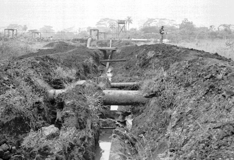 Another manifold had been quickly built over the old one, to get the oil flowing, but there were no drawings of the old buried pipework as they had been lost in the destruction of some of the head office buildings.