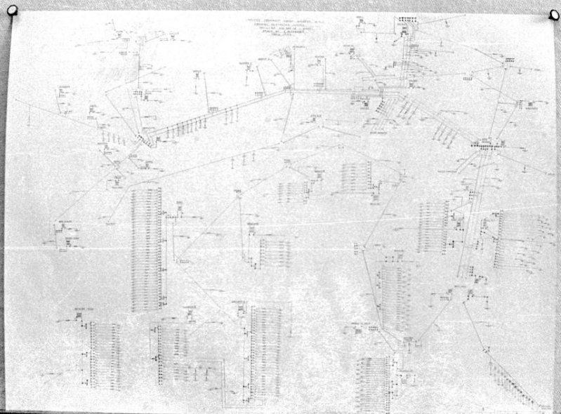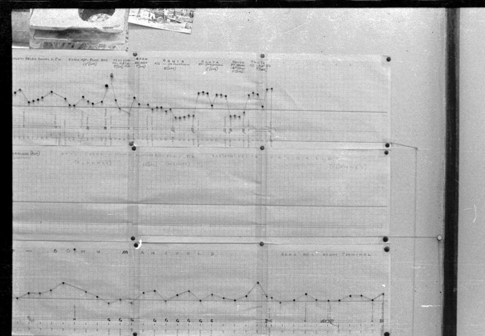 Direct Current readings were shown on cardboard strips on a wall mounted schematic of the pipeline layout of the whole region.