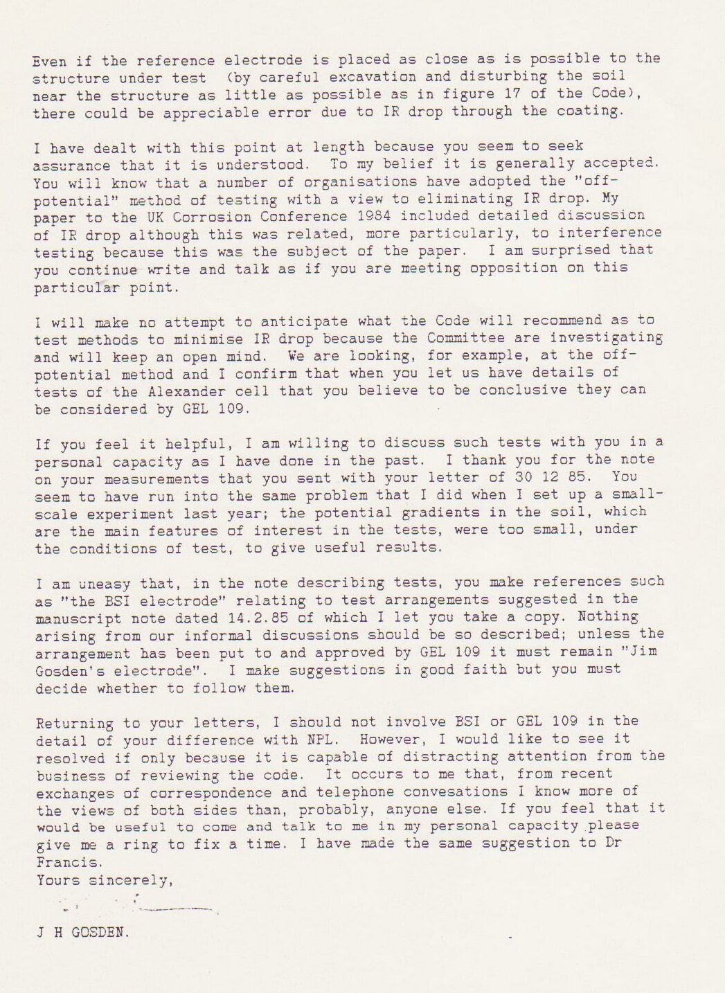 Mike Fosket asked me if I would like to write a paper about my view of cathodic protection which was radically different from mainsteam science at the time.