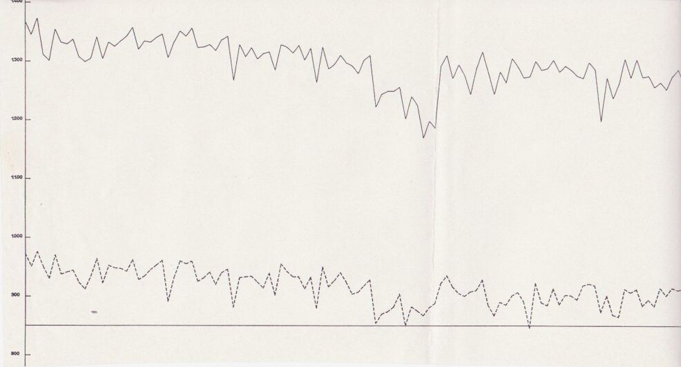 Mike Fosket told me that they used the computer to plot the voltages in both states and that they had started by plotting the difference until they realised that this plot did not show the coating faults as they had hoped.