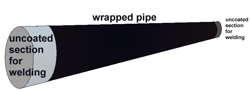 Steel pipes leave the factory in lengths of about 40 feet which are welded together into continuous lengths before lowering into the ditch. Each length has been factory coated but the gaps left for welding are coated in the field.