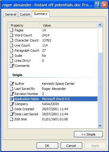 In 2001 Roger Alexander (the little boy who saw the Emperor was nude) was requested by NASA to submit a report for consideration by the American Standards Authority relating to the Immediate Off Potential Survey.