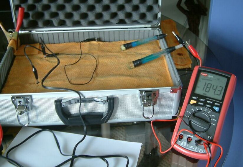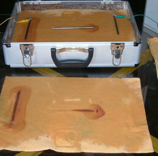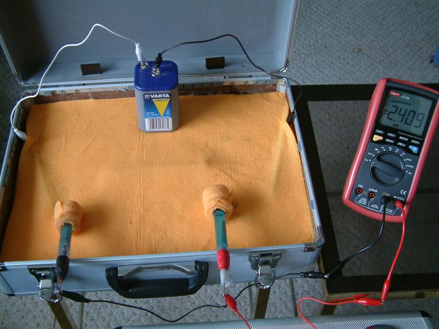 You will see that the half cell is not used in the above pictures and that the results of sticking the nichol plated copper probes into the sand yield useful data.