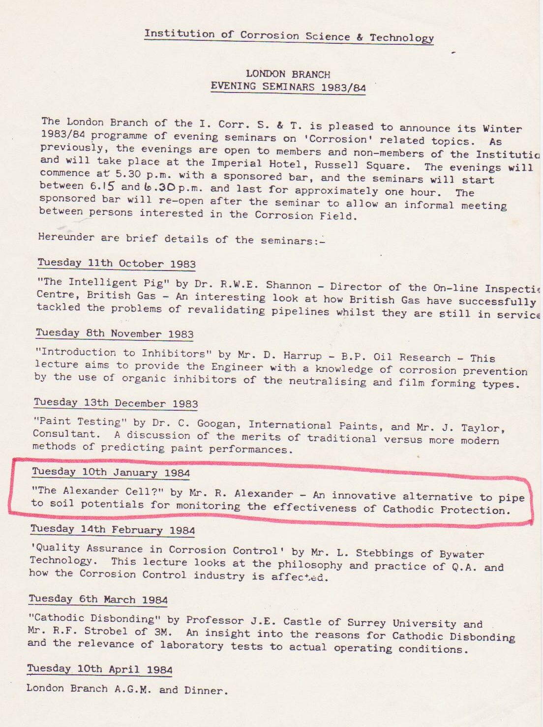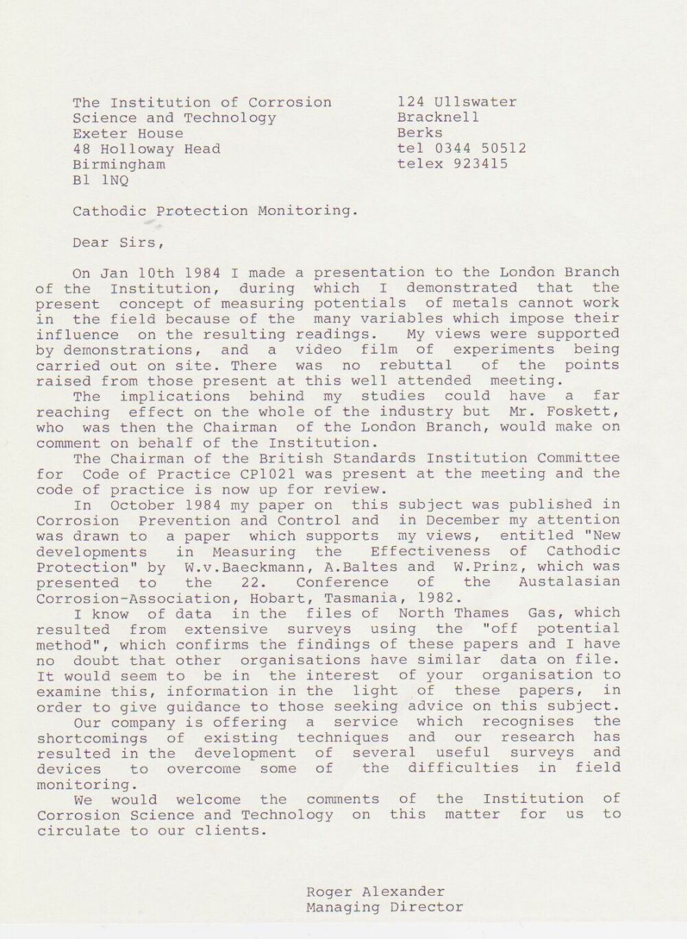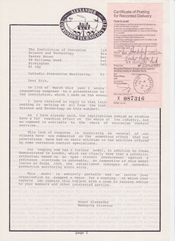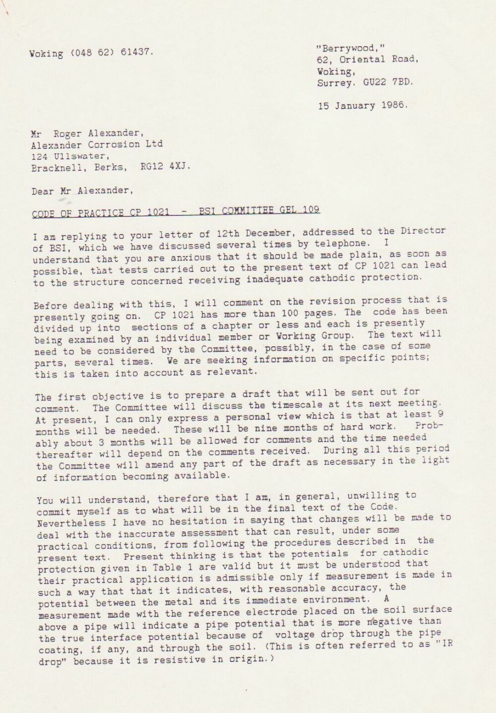 It is a fact that the British Standards Code of practice CP1021 was withdrawn by the chairman of the BSI committee as a result of the presentation made by Roger Alexander to the London Branch of Inst Corr Sc and Tech