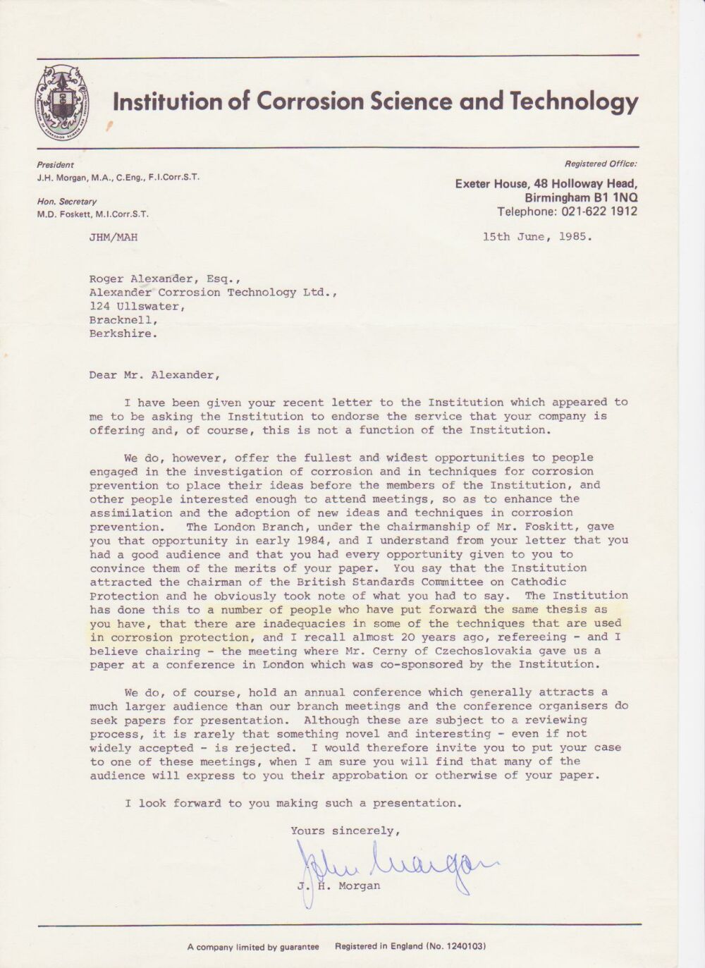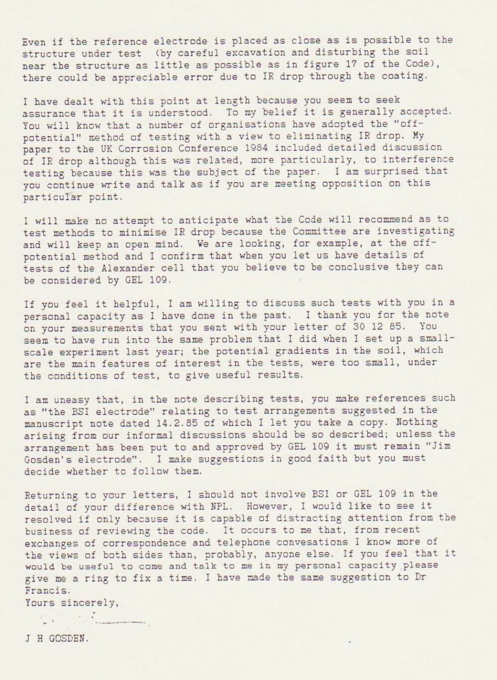 J.H.Morgan was an established consultant with many published papers based on the use of the half-cell as a reference.