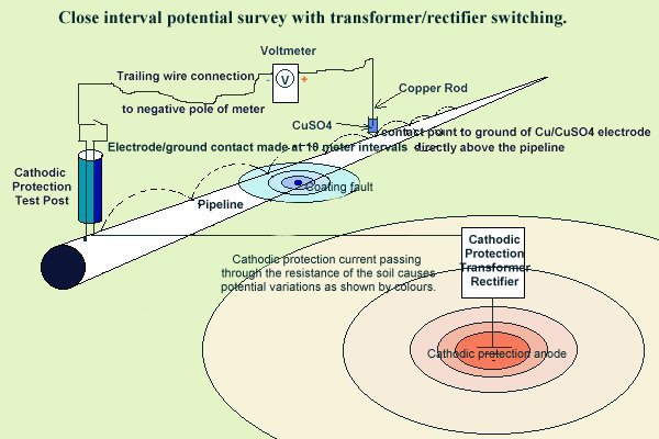 As you can see in this diagram we are measuring voltages when we carry out a Close Interval Potential Survey.